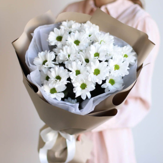 Нежный, небольшой букетик из белой хризантемы Баккарди.